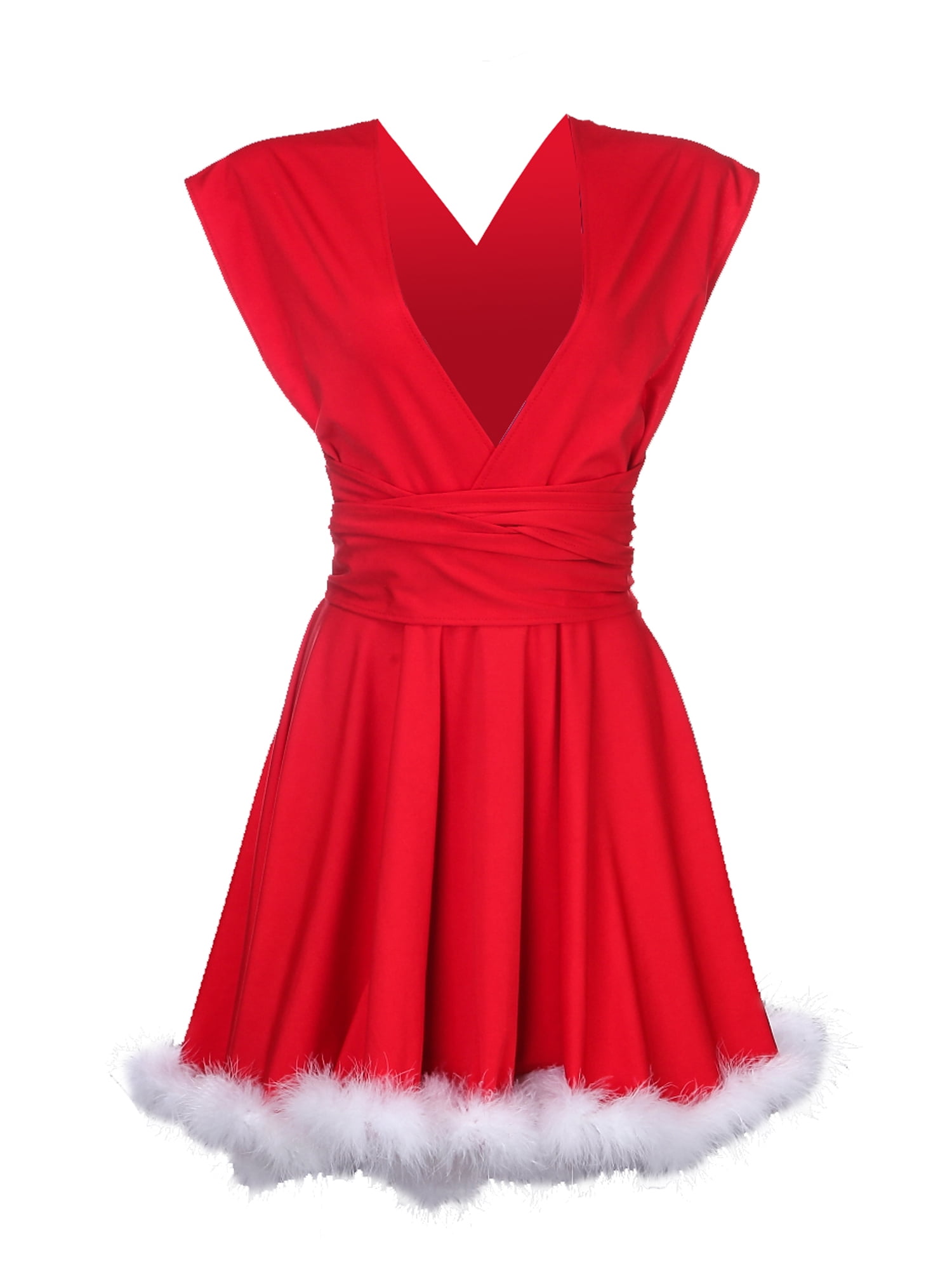 Vova Fashion Christmas Family Matching Dress Mommy And Daughter Clothes Hairy Sleeveless Tutu Red Dress Xmas Costume Outfit